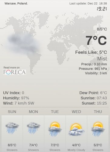 どれくらい日が短かったのだろうと見てみたところ、ワルシャワでは