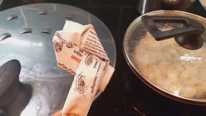 袋は最近日本のポテトチップ袋に折り方がのっていたやり方で