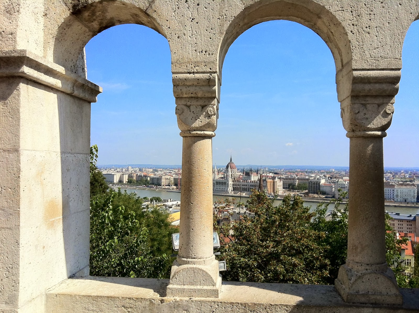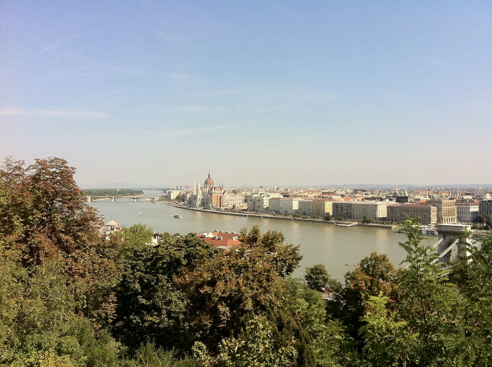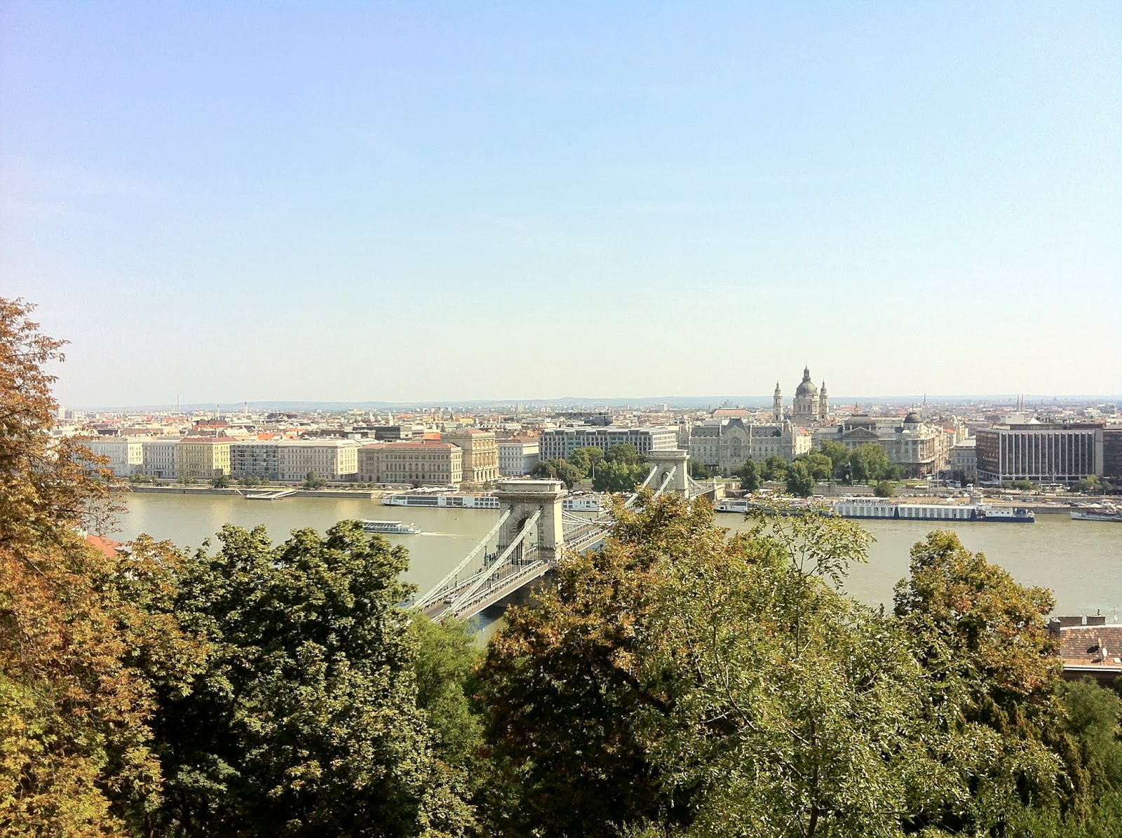 大きな橋を渡ってドナウ川の向こう側、あちらがブダペストのブダ地区です。