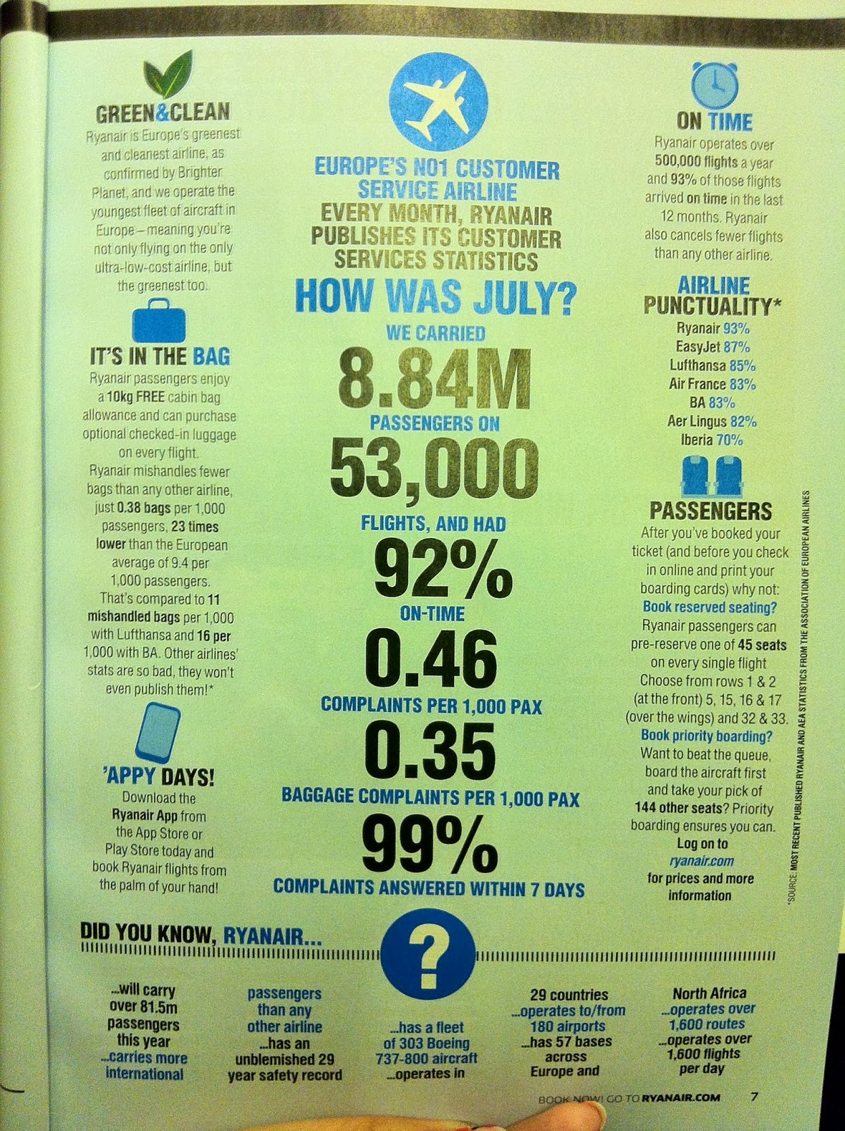 別途書こうと思いますが、ライアンエアーはとても評価が高いめずらしいLCCのようで、
