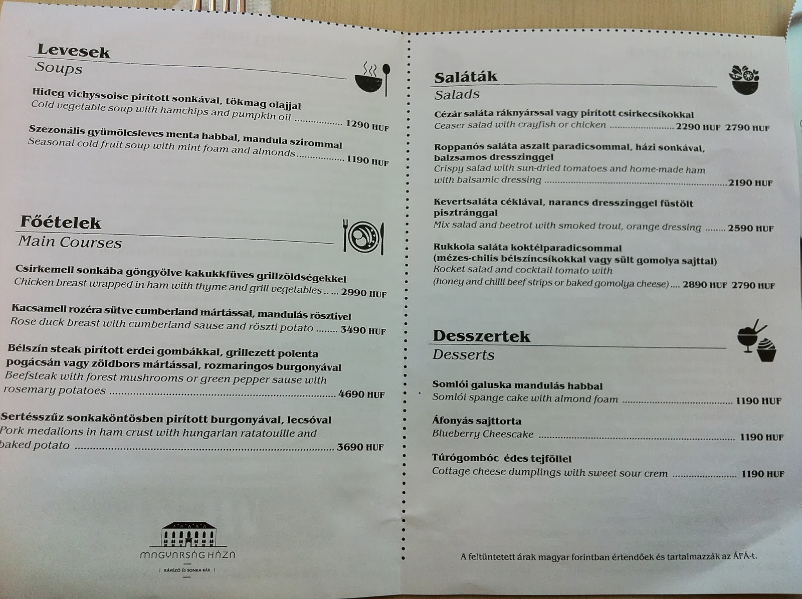 (ハンガリーのくせにランチ1500円オーバーは国内標準と比べたらかなり高いと思うけれど・・・)