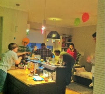テーブルには続々と食べ物が。特別な蝋燭もだしてありました。