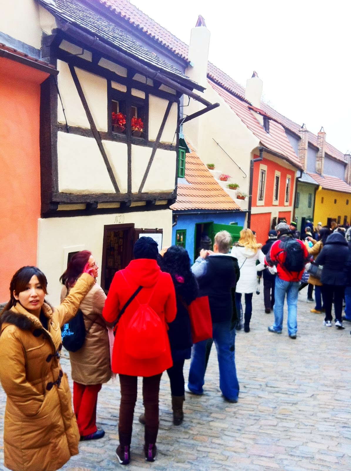 私(154cm)でも頭をかがめるほどです。小人の家のようなカラフルな家々。