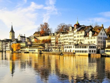 川を挟んで旧市街が広がるチューリッヒ。