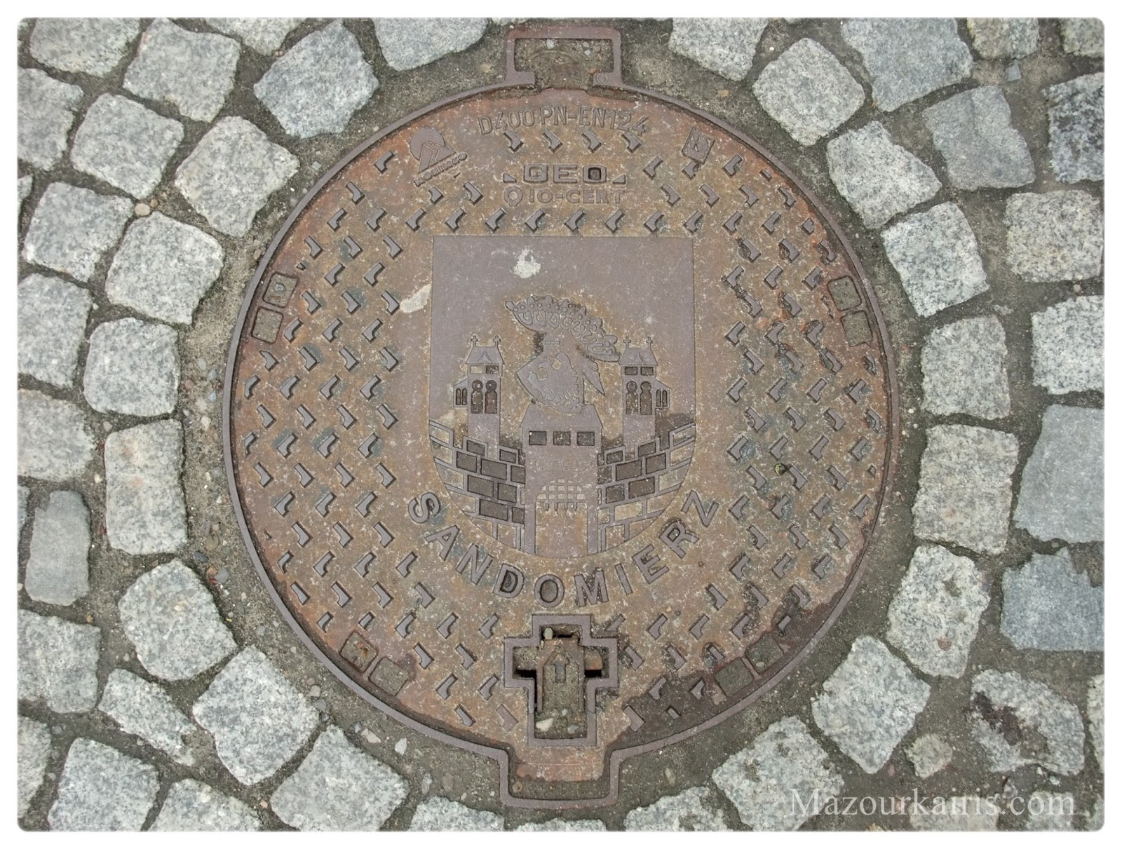 国内旅行恒例のマンホール集め。ちょっと見難いですがサンドミエシュゲット!