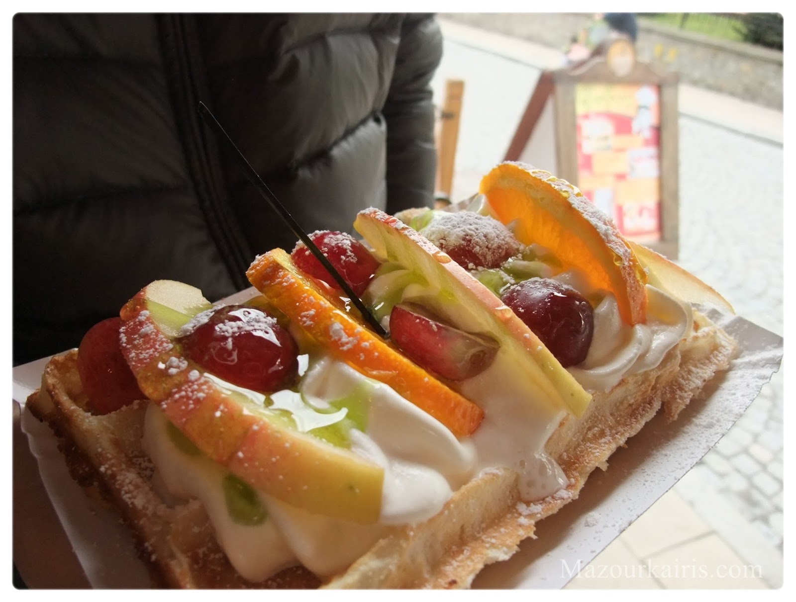 フルーツが沢山乗ったゴフリィ(ワッフル) 8złです♪(安い!)