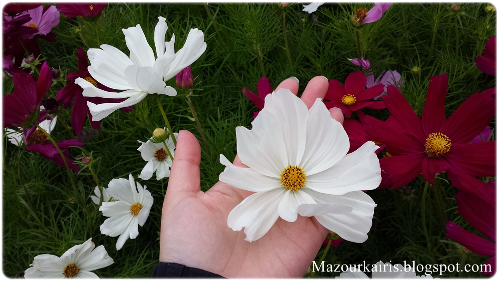 宮殿前の噴水ではコスモスが咲いていました。3色で綺麗ですね。