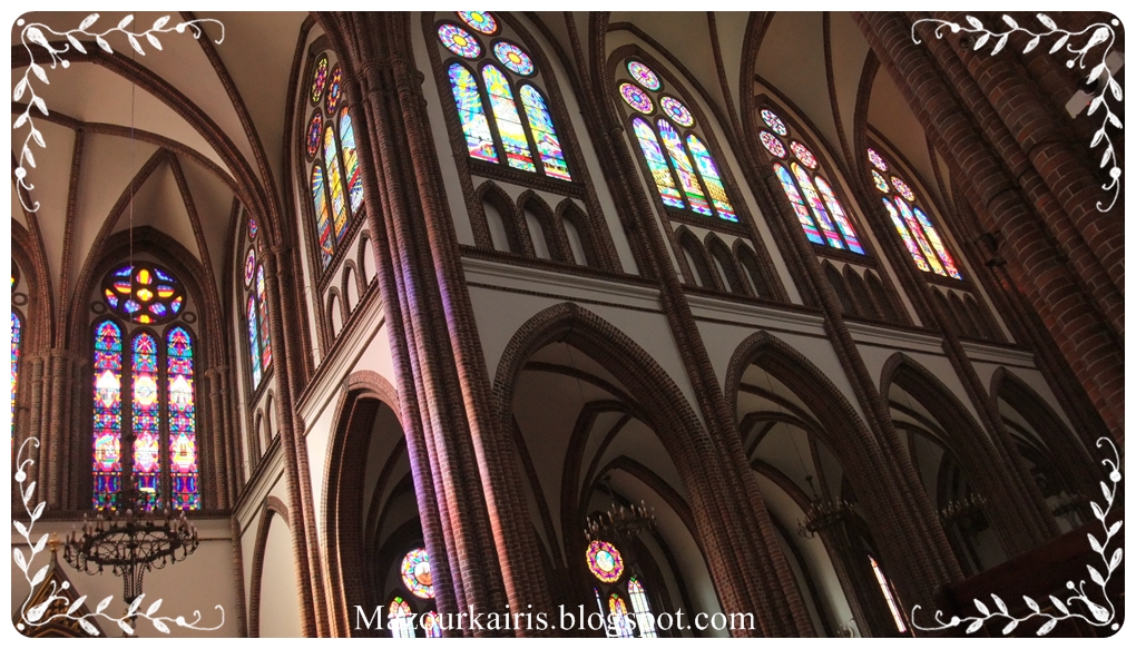 写真だと飛んでいますがステンドグラスがずらっとあって綺麗でした!!