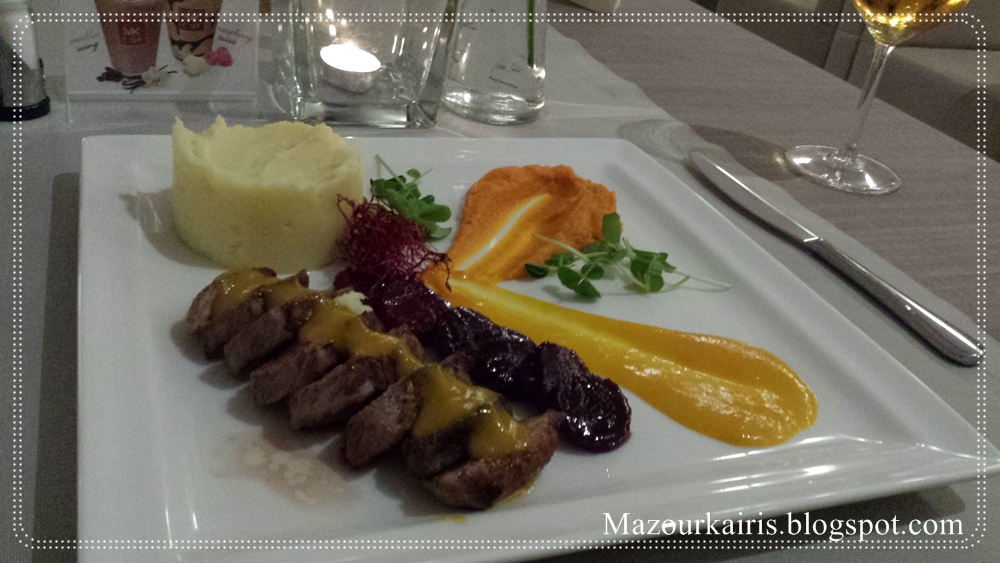 右上は、カモのマンゴーソースがけ、 大きいのはマッシュポテトです。美味しかった~~~!!!