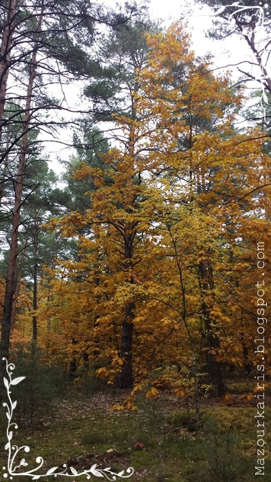 家の周りの木々も黄色くなってきたので、近くの森へ紅葉狩りに出かけました。