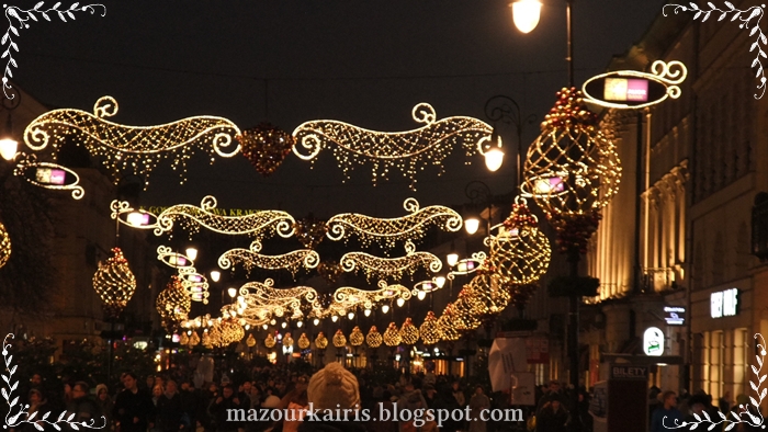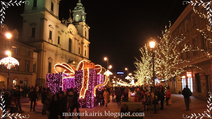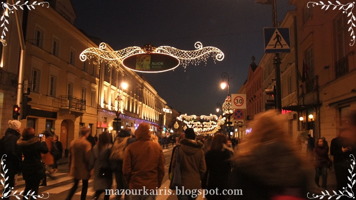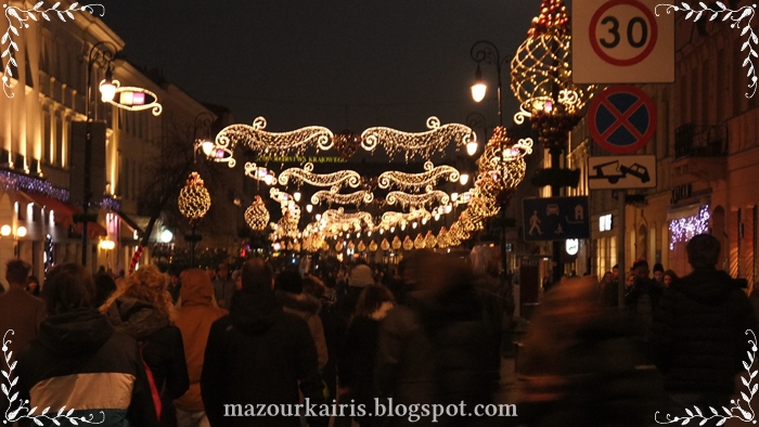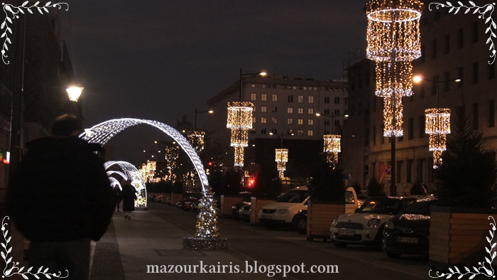 イルミネーションがついたświętokrzyska(シュフェントクシスカ)通りです。