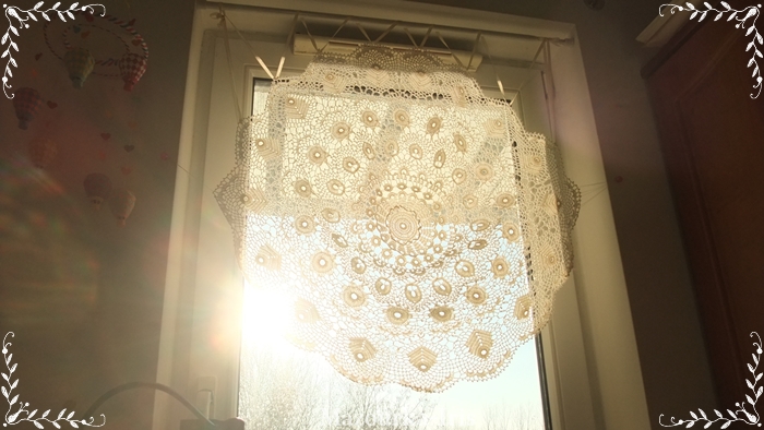 このドイリーは窓に飾るために編んだので