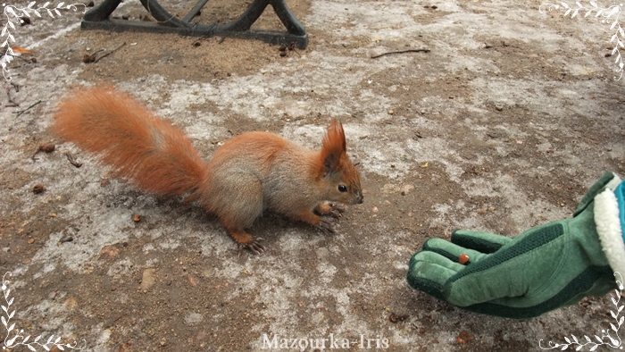 リスがやってきました!もちろん持ってますクルミ!!あげてみましょう^^♪