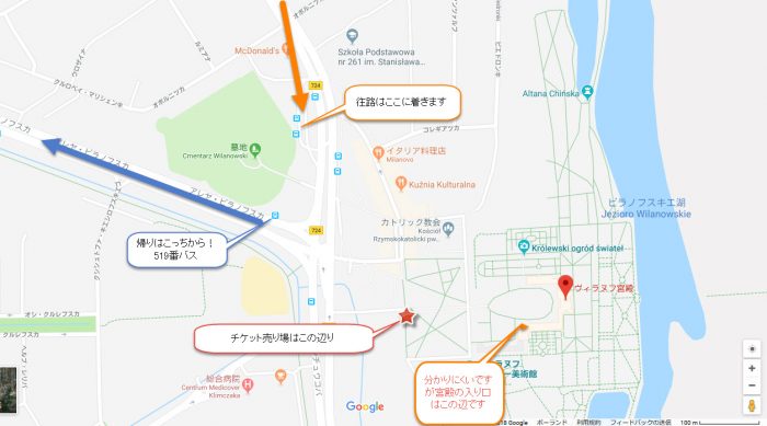 以下の地図は中央駅に帰る方(519番バスに乗ります)へ作った地図ですが参考にしてください。