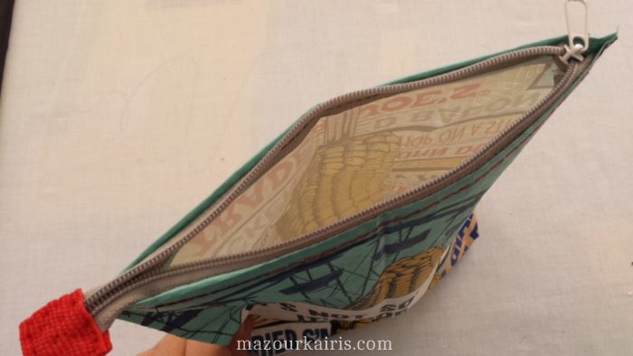 お気に入りのコーン部分を使って、裏地なし・パイピングもなしで
