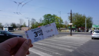 駅でトイレを済まし(2.50zł)、券売機で切符を買ってバスに乗ります。