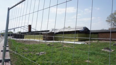 最初に見えてくるバラクはガス室。が、この日非常に残念なことに工事中でした。