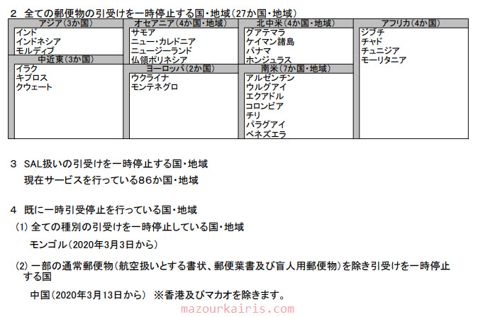 今年3月14日から他の国とのすべての郵便物の発送が中止になっています。