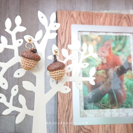 どんぐりのイヤリング、キーチェーン、ネックレスなどを販売しております。
