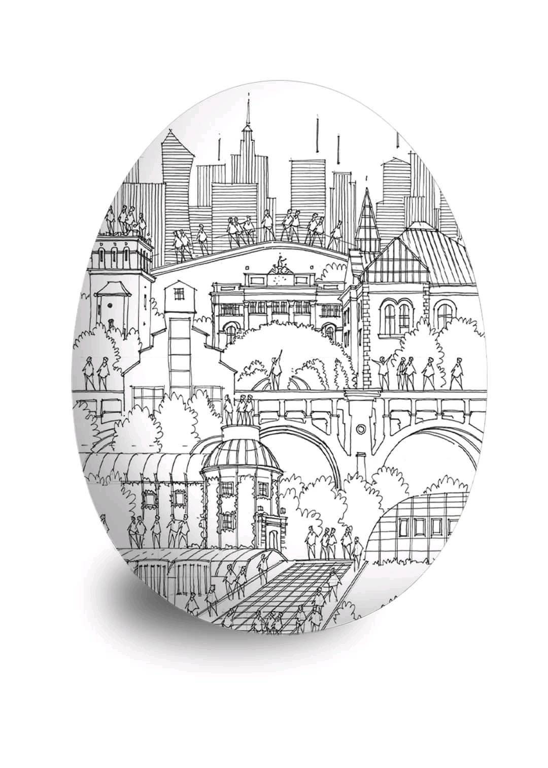 Tytus Brzozowskiによる「夢のワルシャワの建築」水彩画