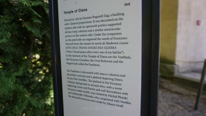 この墓は、スタニスラウス・アウグストゥス王の多大な尽力によって作られたものである。という銘文が添えられていた。エト・イン・アルカディア・エゴ」「ジェイ・アイ・フェット・ラルカディ・ジュ・イ・リポーズ」。墓碑の正面に刻まれた「Et in Arcadia ego」という言葉が、アルカディアの庭の文学プログラム構築の出発点であった。トゥームは、古代のシンボル、人工的な遺跡がたくさんある庭園、魅力的なコーナー、美しく賢明な覚醒者などを参考に、クリエイターが非常にインスピレーションを受けたものです。