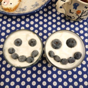 最後ブルーベリーで顔を作りました😄