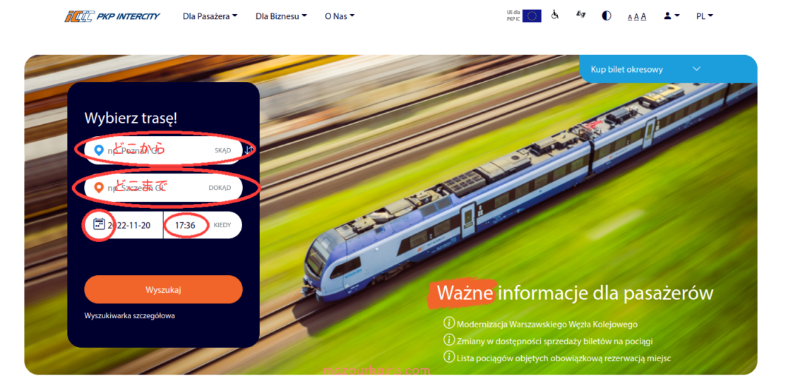 EIPペンドリーノ 2022年11月某日 コロナになってからしばらく公共機関で旅行をするということがなく、インターシティのページも見ることがなかったのですが 久しぶりに見てみたら料金含め色々変わっていたので改めて書き直して見ようと思います。 今後旅行にポーランドへ来る方の参考になれば幸いです。 今回はワルシャワからグダンスクまでのチケットをオンライン予約でする流れを残していきますが 途中で表示され … 続きを読む <2022年版>EIP/EIC/ICインターシティのオンライン予約の仕方