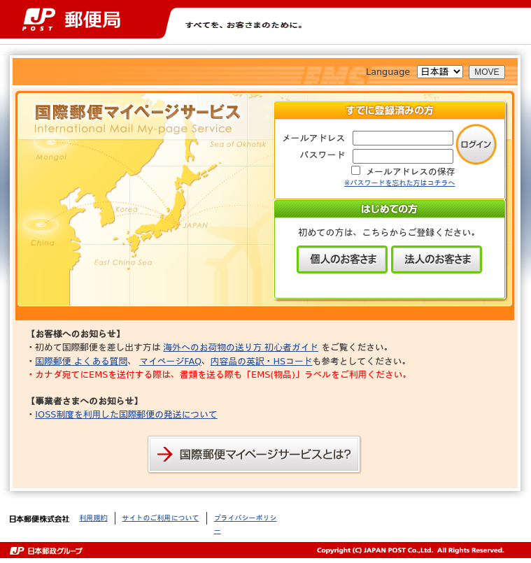 国際郵便マイページからログインします。
