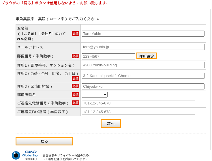 自分の住所を入力していきましょう。