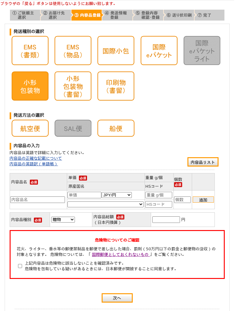 ここでまずは禁制品(送れない物)を確認しましょう。