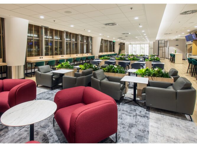 より快適になったラウンジで、旅の前にリラックスしてください」