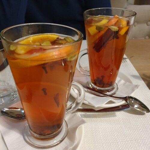 メニューに加えられるオレンジ、シナモン、クローブ、アニスなどがはいった紅茶を飲みます😊