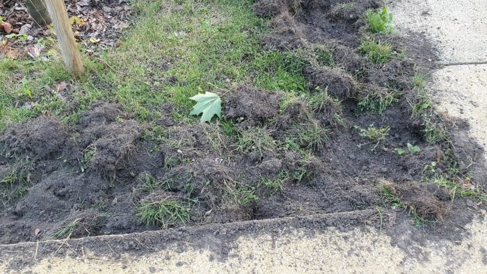 結構深くごっそり掘られてしまっていて、このままだと芝生が…!