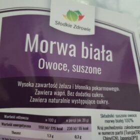 これはポーランド語でMorwa białaモルヴァ ビャワ(白い桑の実)