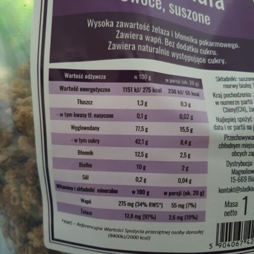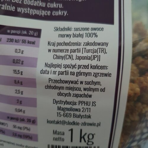 この白桑の実は20g食べるだけでも十分に多い食べ物のようです。