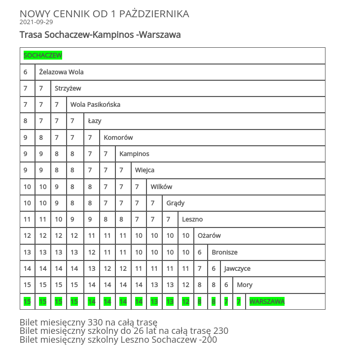 ジェラゾヴァヴォラまでmotobusで3日前の10月7日に行ってきました。片道、19zlではなく10zlでした。neo